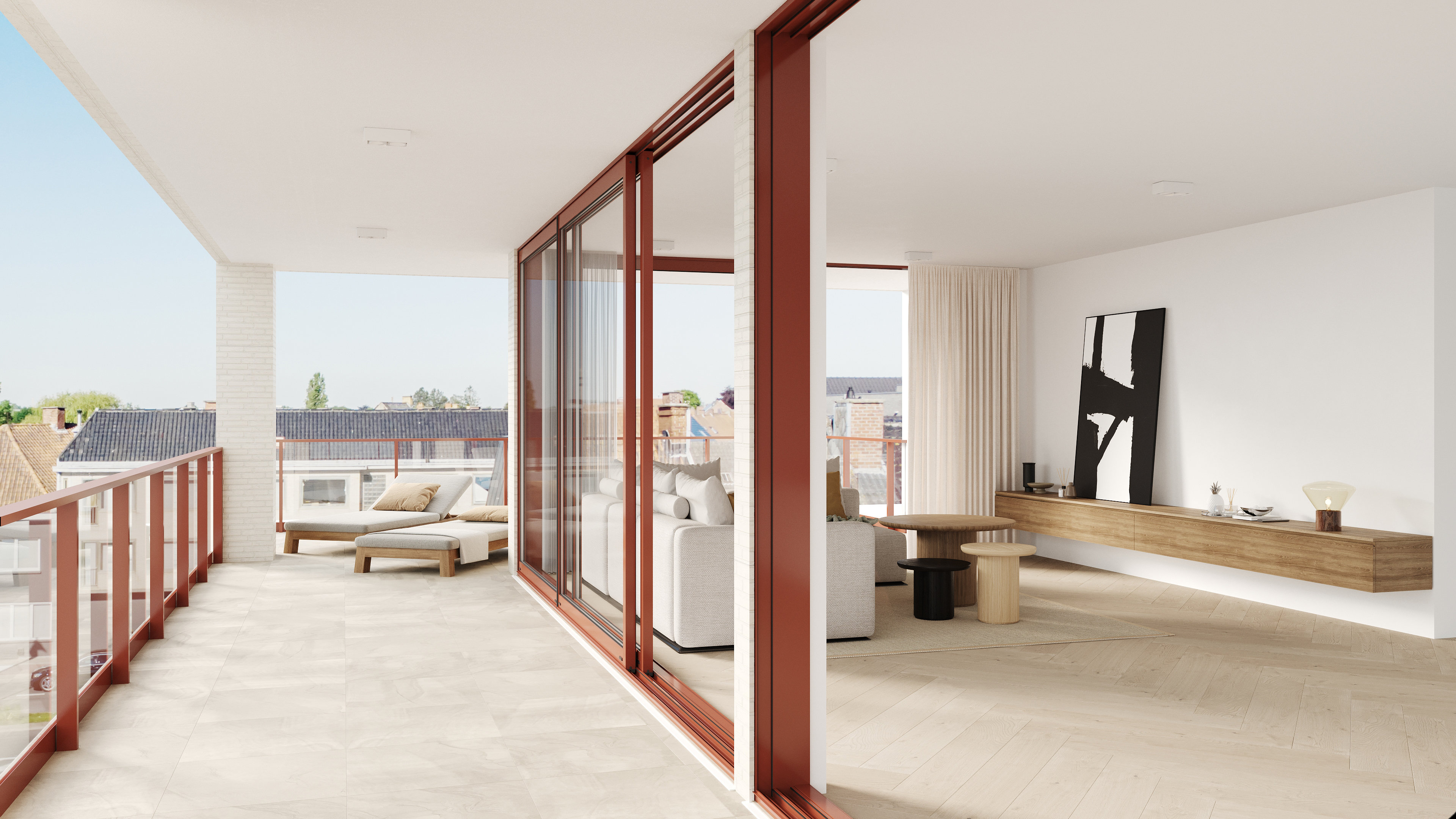 Er is een aanbod van 59 appartementen, verdeeld over 2 gebouwen. Bij de ingang van de site aan de Weststraat biedt w.e.s.t. A plaats aan 4 appartementen. Het grootste gebouw w.e.s.t. B telt 55 appartementen, met 1, 2 of 3 slaapkamers. Alle appartementen hebben een groot terras gericht op het zuiden. Droomde je altijd al van een penthouse? Hier zijn ze volledig vrijstaand! Vanop de ruime terrassen geniet je van een uniek 360° zicht over de omgeving.
